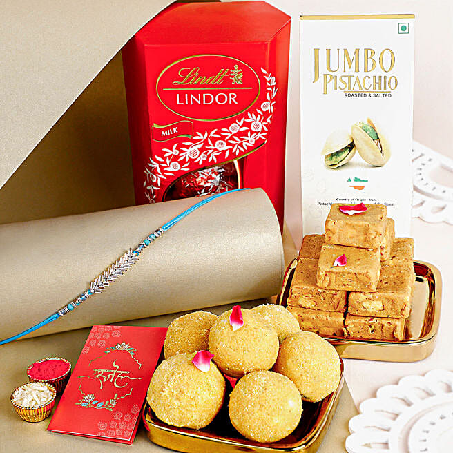 Glittering Grandeur Rakhi Set & sweets Collection