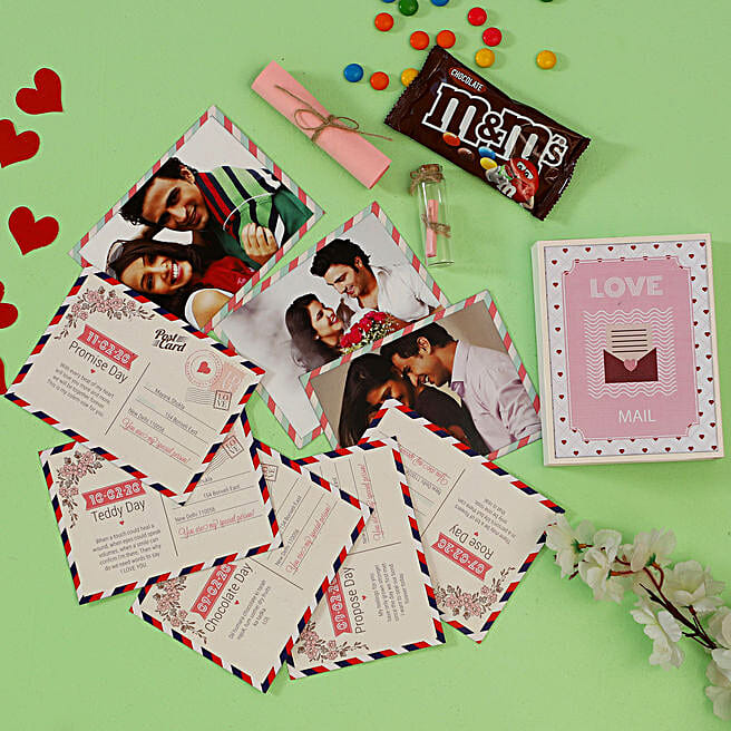 This paper mailbox includes 8 personalised postcards for entire Valentine’s week, one secret message in a bottle, M & M’s and one blank rolled letter. It is an amazing gift idea for someone who wants to delight their sweetheart each day of Valentine’s week in a romantic way. The surprise will surely leave the recipient spellbind.