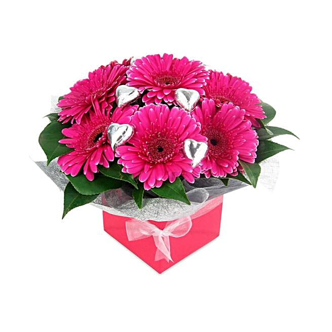 Charismatic Gerberas Box And Heart Shaped Chocolates