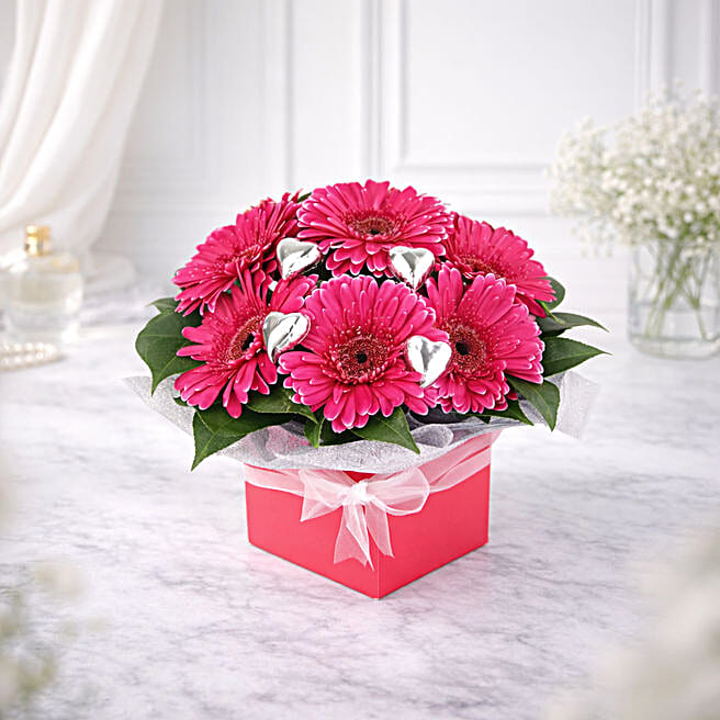 Charismatic Gerberas Box And Heart Shaped Chocolates