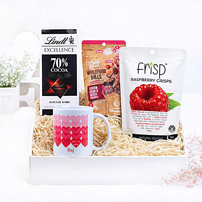 Personalised Fluttering Hearts Mug & Sweets Combo