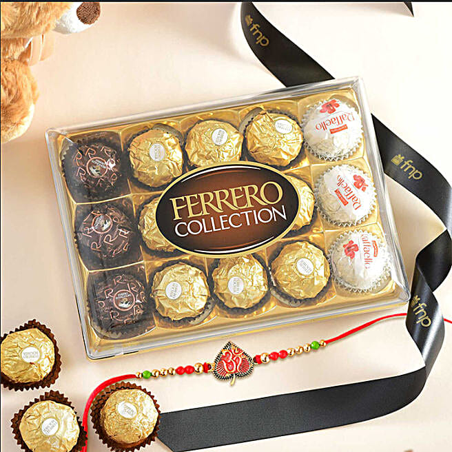 Rose Gold Om Rakhi & Premium Ferrero Chocolates