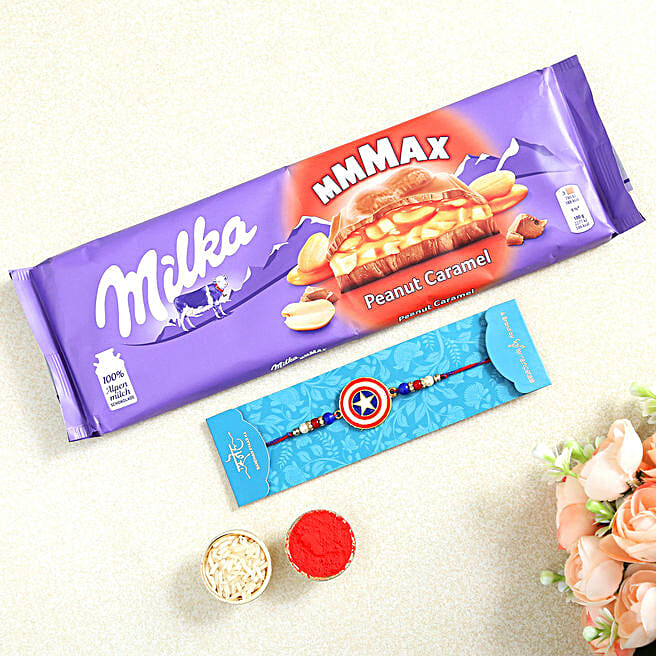 Captain America Kids Rakhi And Milka Peanut Chocolate