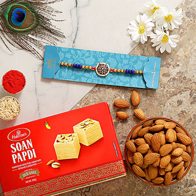 Meenakari Rakhi With Soanpapdi And Almonds