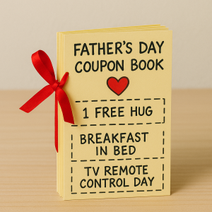 For the dad who’s always busy, always working, and always doing things for everyone, this is your chance to give something back. Handmade Father’s Day gifts, like a coupon book filled with little “treats,” will make him feel pampered and loved. Cut small cards or pieces of paper and write out different coupons like “1 Free Hug,” “Breakfast in Bed,” “TV Remote Control Day,” or “Car Wash by Me.” Staple them together or tie with a ribbon to create a mini booklet. It’s cute, practical, and shows you care about his comfort and joy.