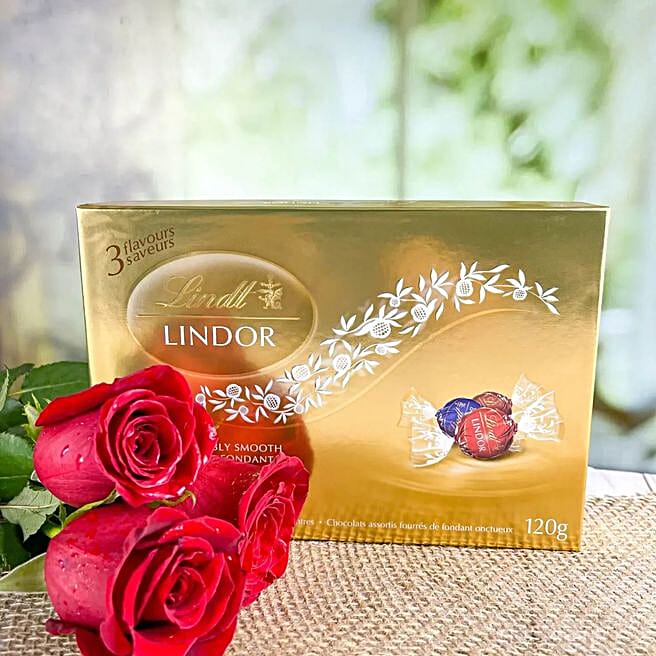 Eternal Love Red Roses Bunch -3 And Lindt Chocolate -120 gms