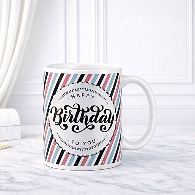 Pastel Coloured Stripes Birthday Mug