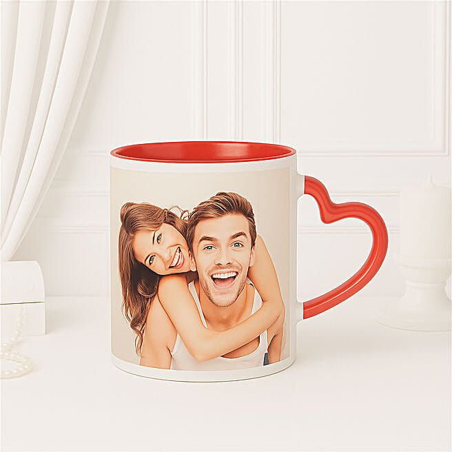 Personalised Red Heart Handle Mug
