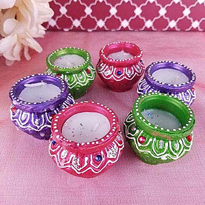 Set of 6 Colorful Diyas