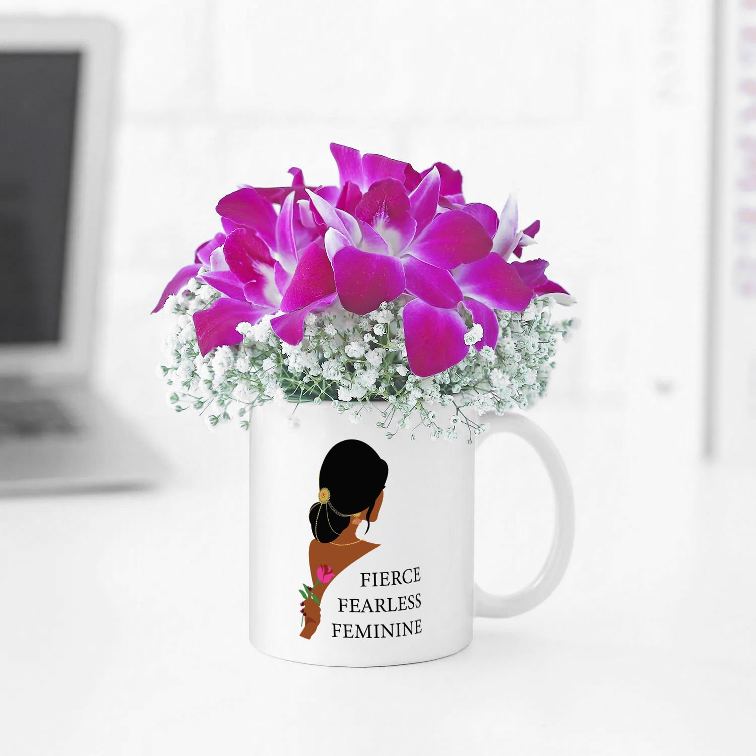 Joyful Orchids In Mug For Fearless Woman