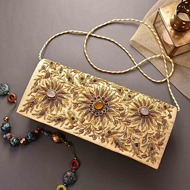Beautiful Party Wear Golden Clutch