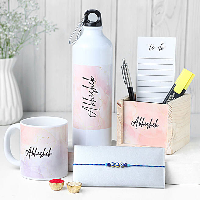 Minimalistic Navy Evil - Eye Rakhi & Daily Essentials Combo
