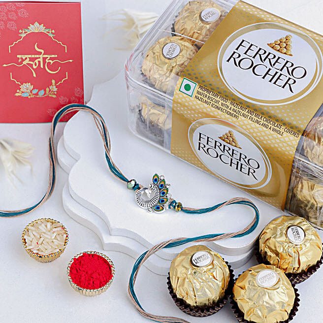 Sapphire Serenity Peacock Rakhi & Ferrero Delight