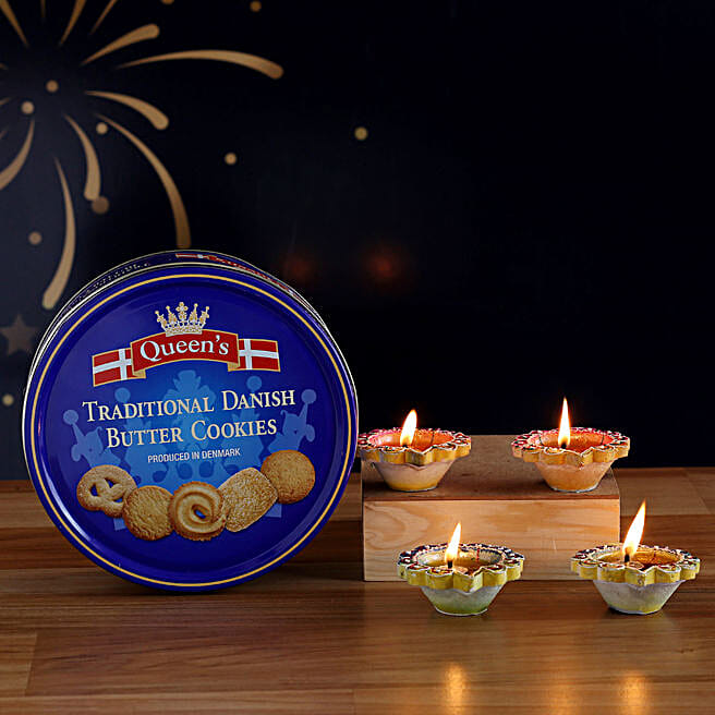 Set O 4 Diwali Diyas And Danish Butter Cookies