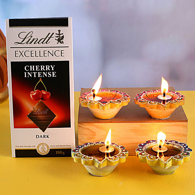 Set Of 4 Designer Diyas And Lindt Cherry Intense Dark