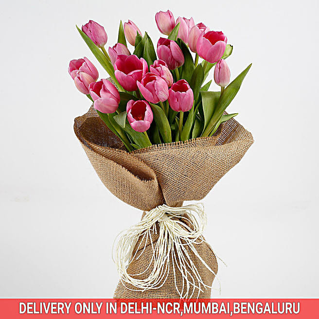 18 Purple Tulips Jute Wrapped Premium Bouquet