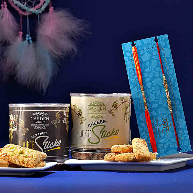 2 Pearl Beads Mauli Rakhis & Dry Fruit Stick Hamper