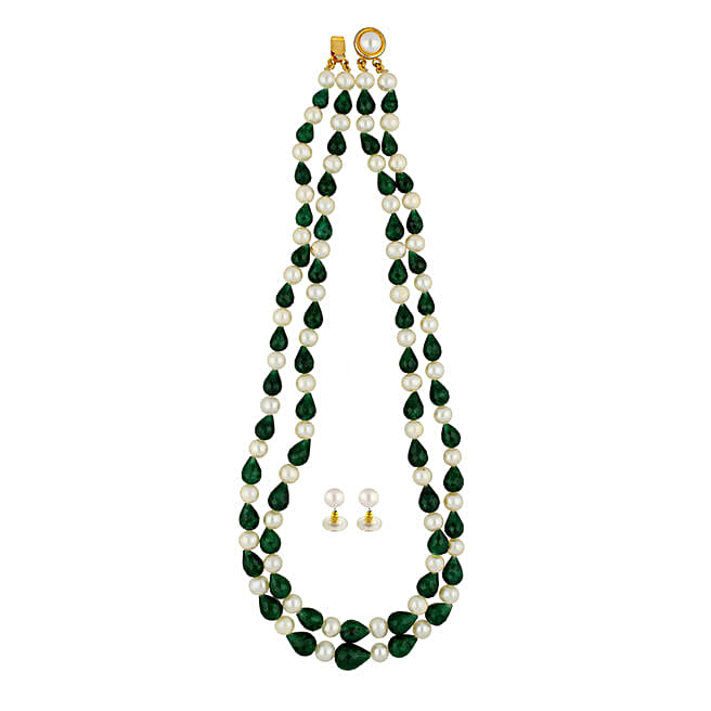 2 string Pearls And Emerald Necklace