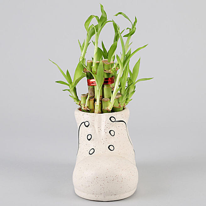 3 Layer Bamboo In Shoe Shaped Ceramic Pot