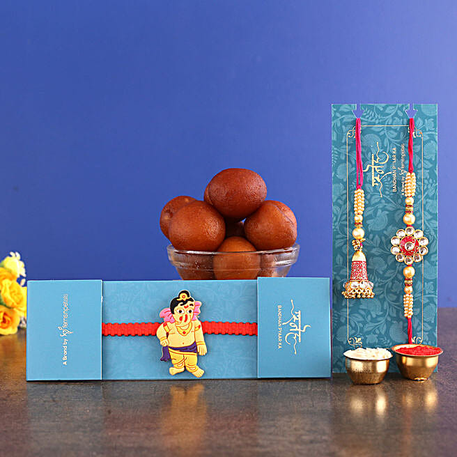 3 Traditional Rakhis and 1 Kg Gulab Jamun