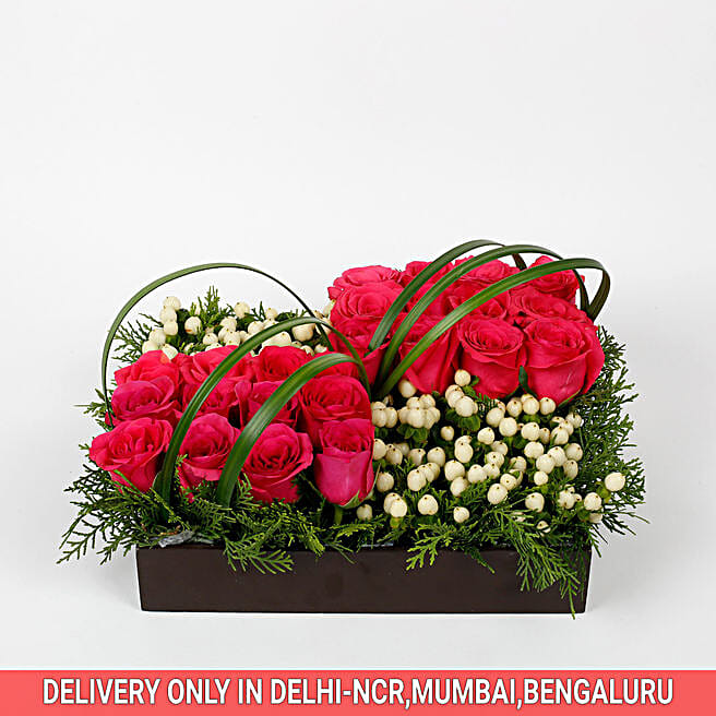 30 Pink Roses 13 Hypericum Berries Tray Arrangement