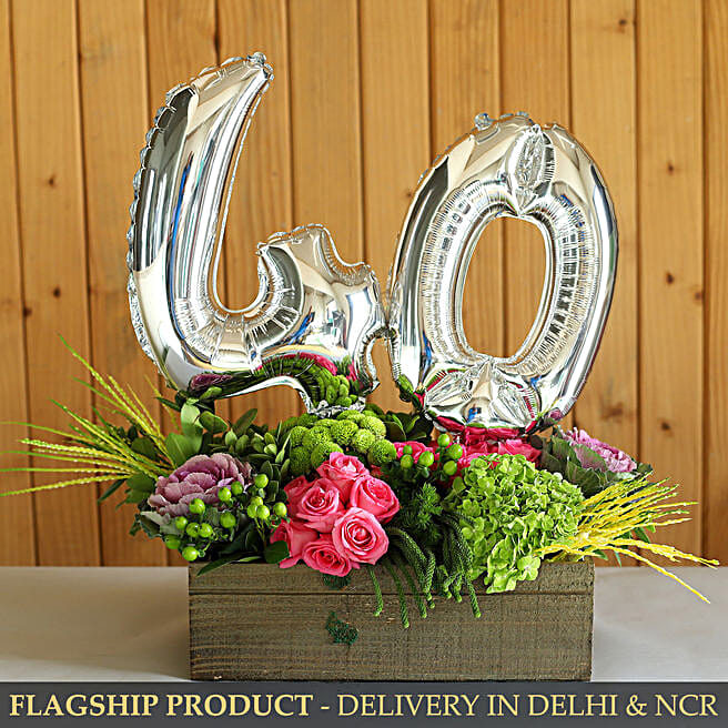 40 Number Balloon & Mixed Flowers Arrangement