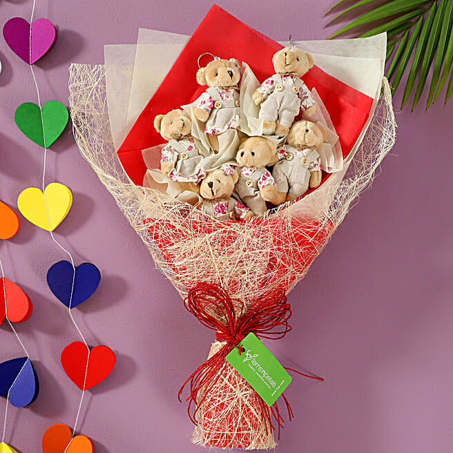 6 Cuddly Teddy Bears Bouquet