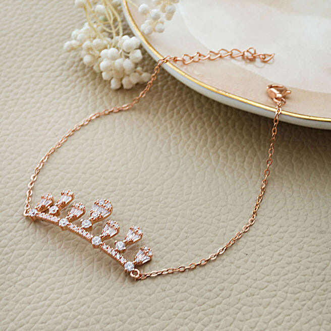 925 Silver Crown Bracelet- Rose Gold