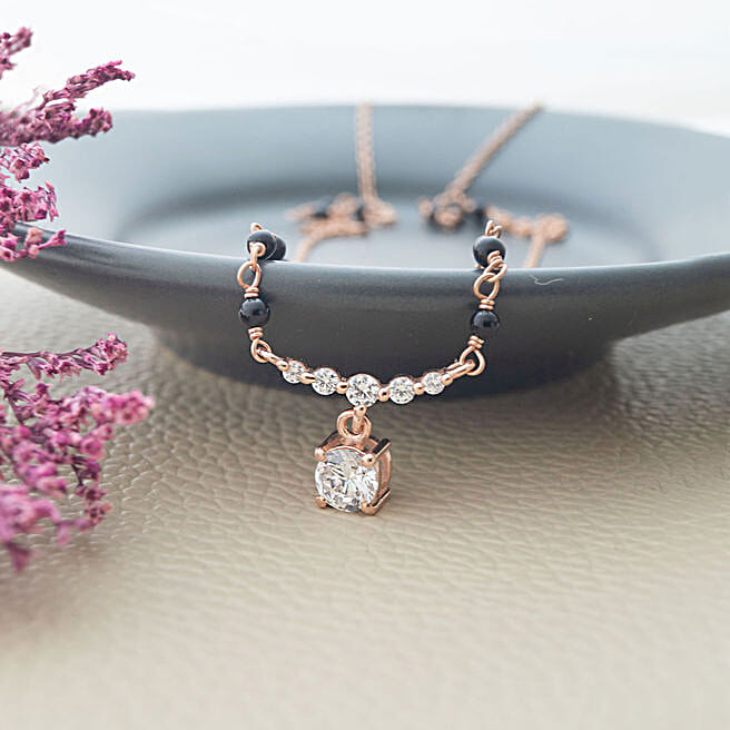 925 Silver Solitaire Mangalsutra- Rose Gold