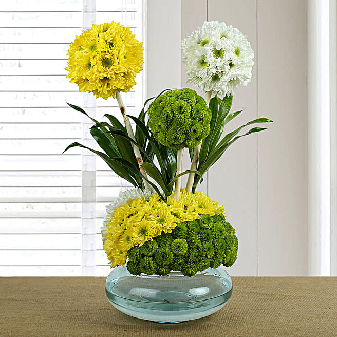 Yellow & White Daisies Glass Vase