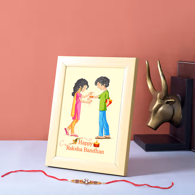 Alluring Rakhi & Personalised MDF Photo Frame