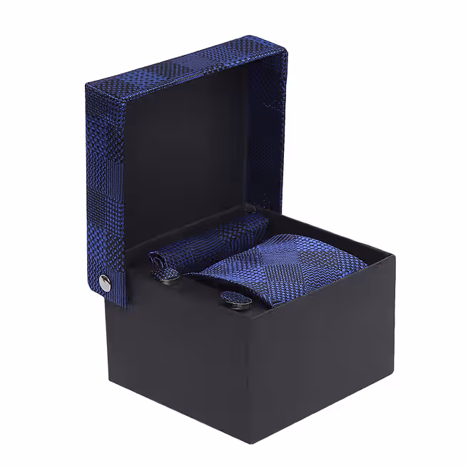 Alvaro Castagnino Blue & Black Necktie Pocket Square And Cufflinks Tie Set for Men