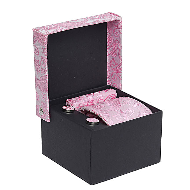 Alvaro Castagnino Pink Necktie Pocket Square And Cufflinks Tie Set for Men
