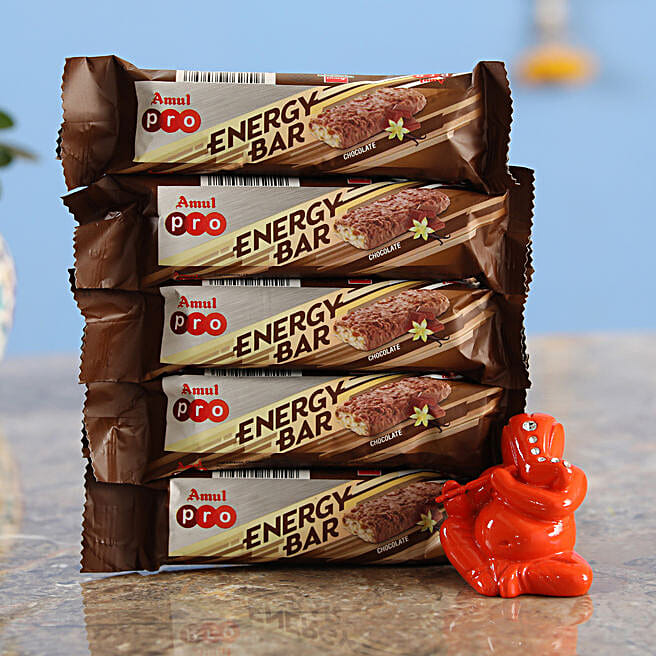 Amul Pro Energy Bars & Orange Ganesha Idol Combo