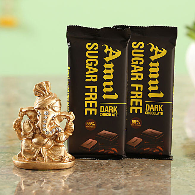 Amul Sugar Free Dark Chocolates & Beige Ganesha Idol Combo