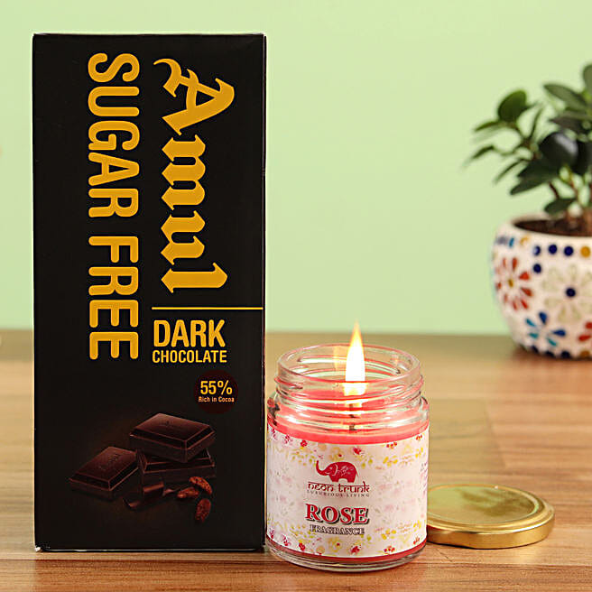 Amul Sugarfree Dark Chocolate & Essential Oil Diya Combo