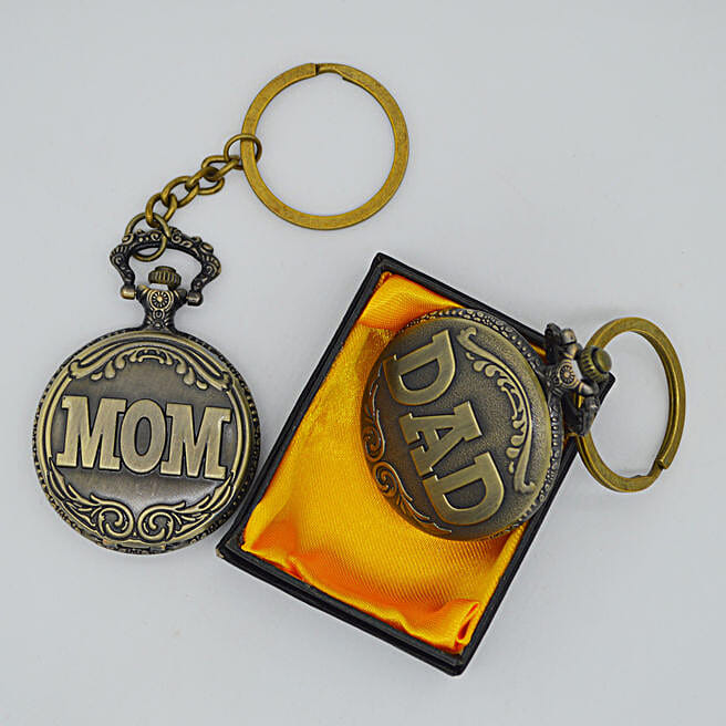 Antique Pocket Watch & keychain - Mom & Dad