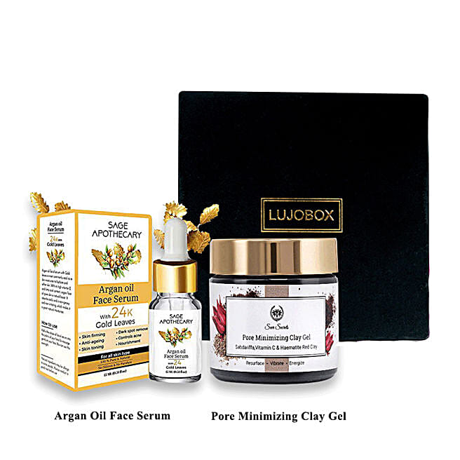 Lujo Box Argan Oil Face Serum And Vitamin C Clay Gel Combo