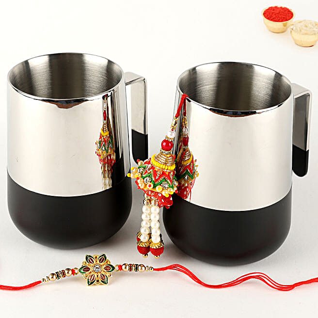 Arttd’inox Stainless Steel Magic Black Mugs & Rakhi Set
