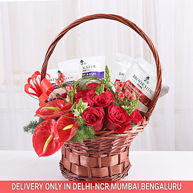 Basket of Flowers & Brookside Chocolates