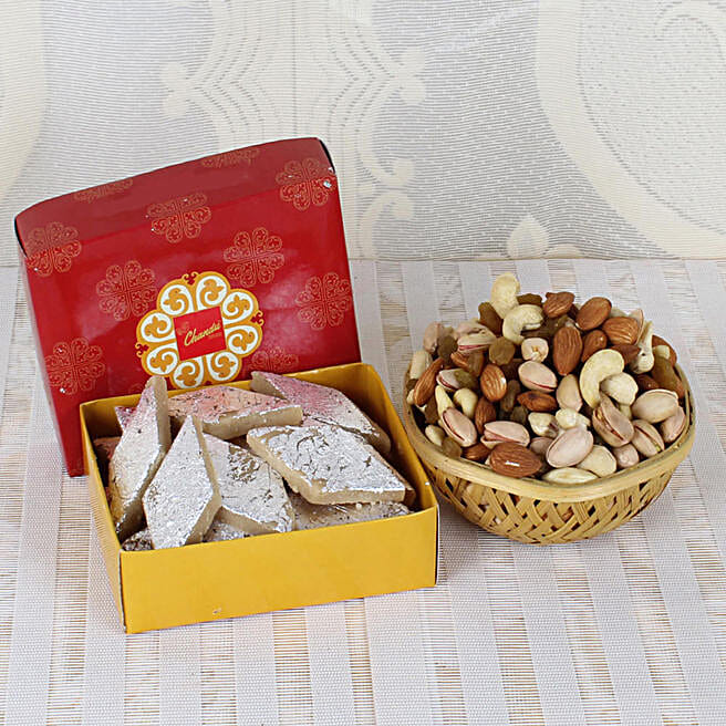 Basket Of Kaju Katli & Dry Fruits