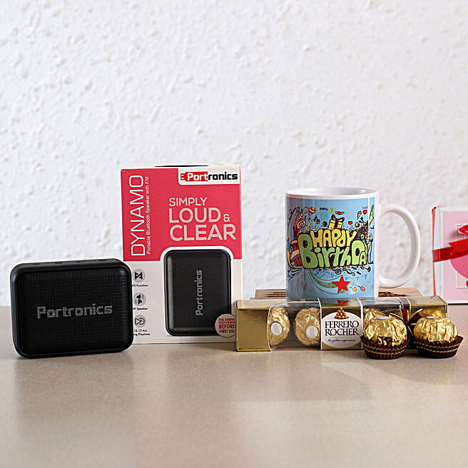 B'day Mug With Portronics Dynamo BT Speaker & Chocolates