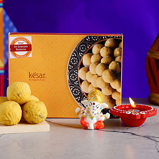 Beautiful Ganesha Idol & Diya With Besan Laddoo