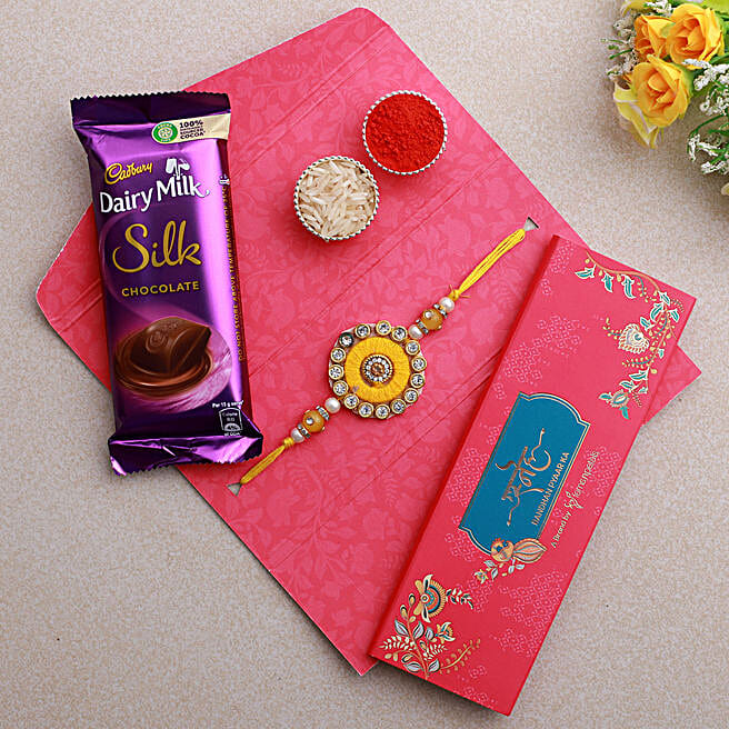 Beautiful Kundan Rakhi & Dairy Milk Silk