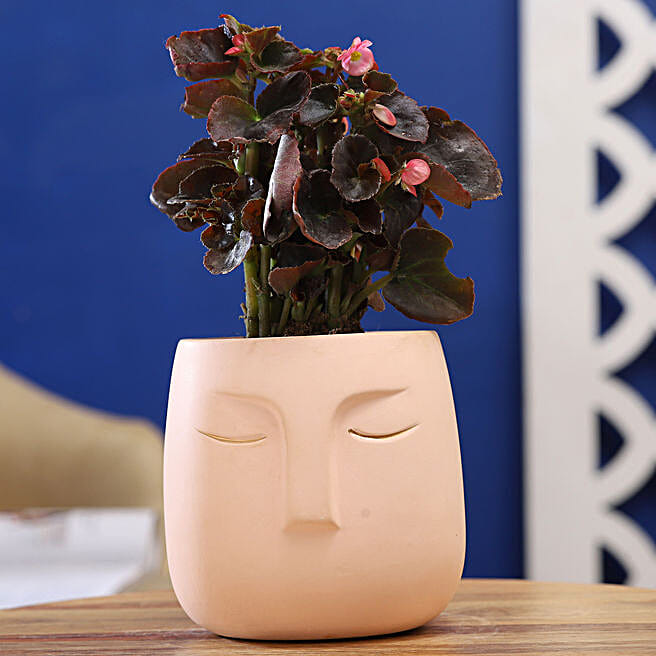 Begonia Plant In Pink Ceramic Face Pot