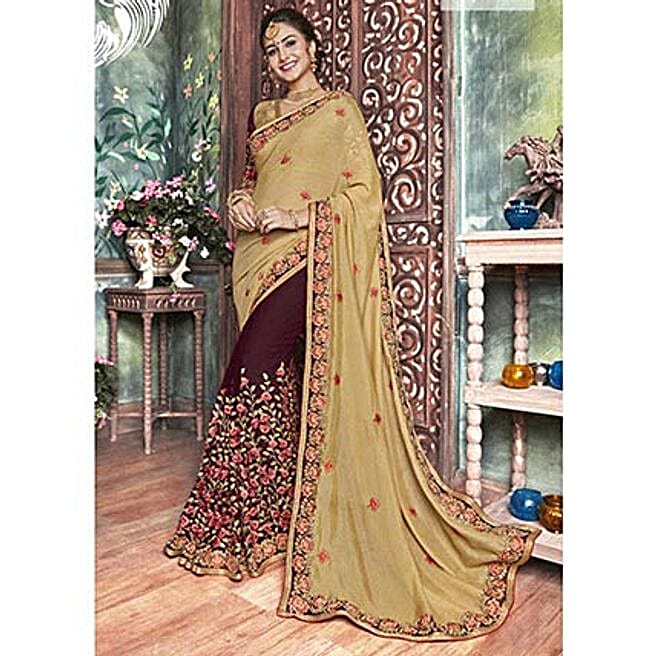 Beige Brocade Embroidered Festival Wear Sarees