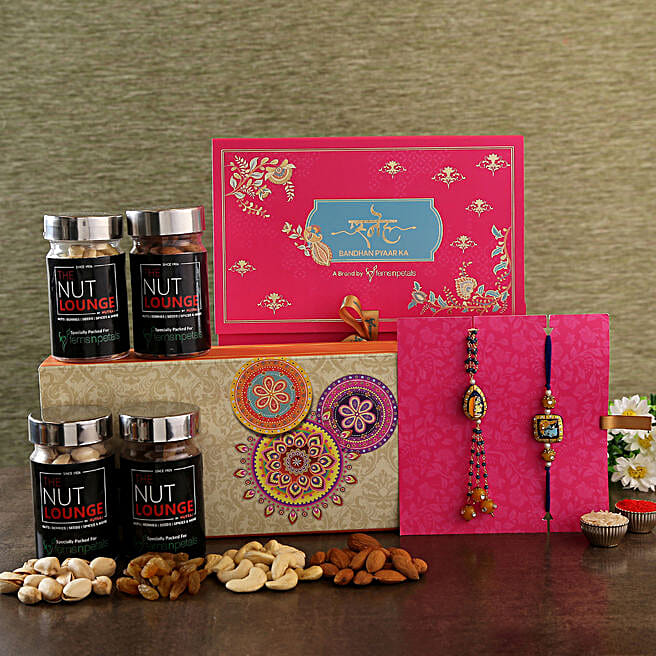 Bhaiya Bhabhi Luxury Rakhi Set & Assorted Dryfruit Jars