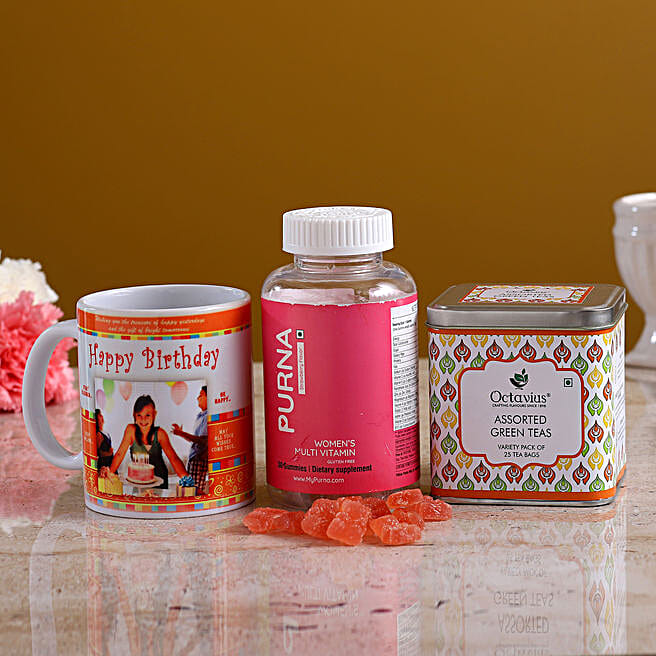 Birthday Mug With Purna Strawberry Gummies & Green Tea