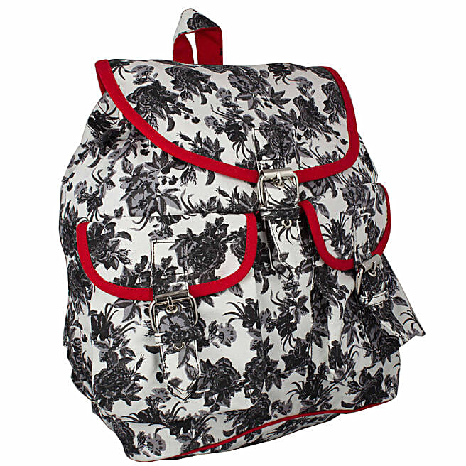 Black And White Printed Backpack
