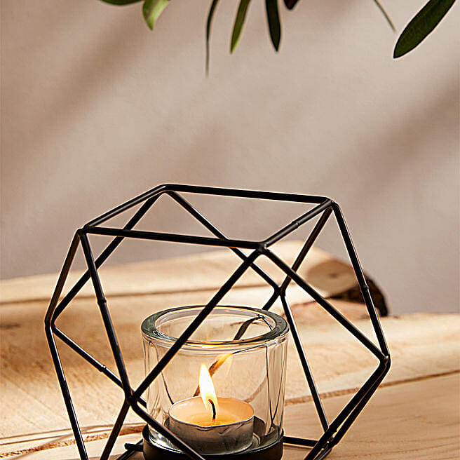 Black Metal Tea Light Geometrical Candle Holder